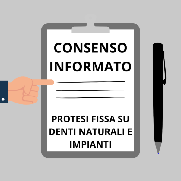 La chiarezza nei dettagli delle procedure di protesi fissa promuove una pratica trasparente e sicura. Il nostro Modello di Consenso Informato offre sicurezza giuridica a entrambe le parti, garantendo che pazienti e professionisti siano pienamente informati e consenzienti.